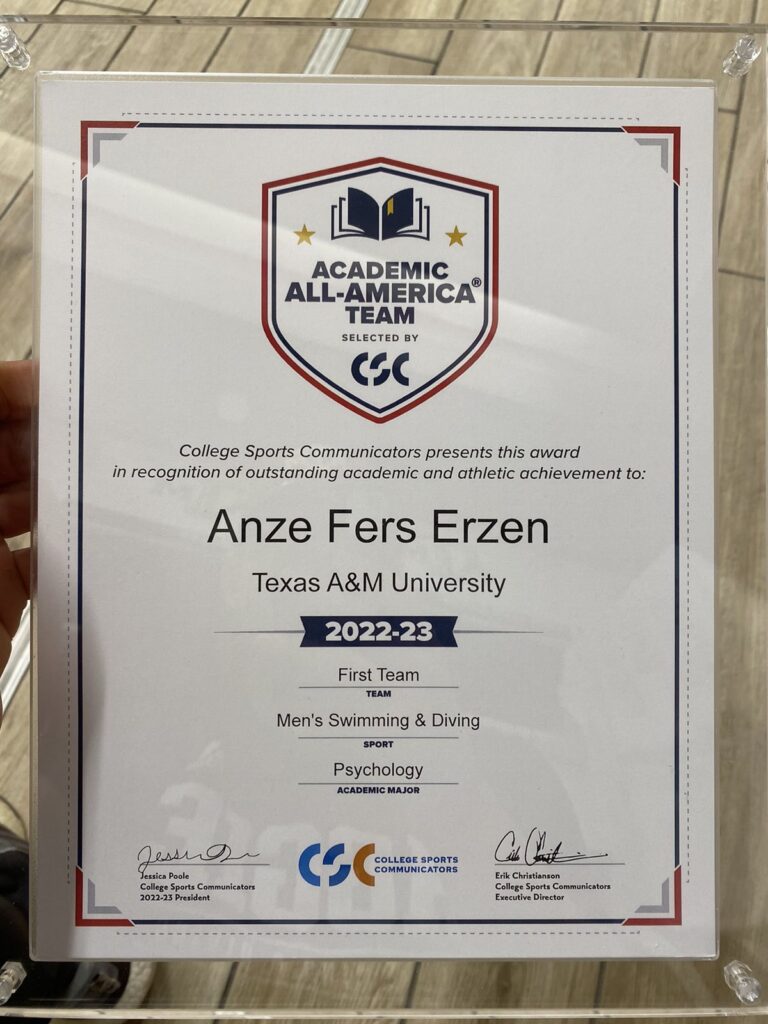 Anže Ferš Eržen, je v zadnjih letih uspešno usklajeval študij s plavanjem in v tem času nanizal veliko dosežkov in uspehov na obeh področjih.