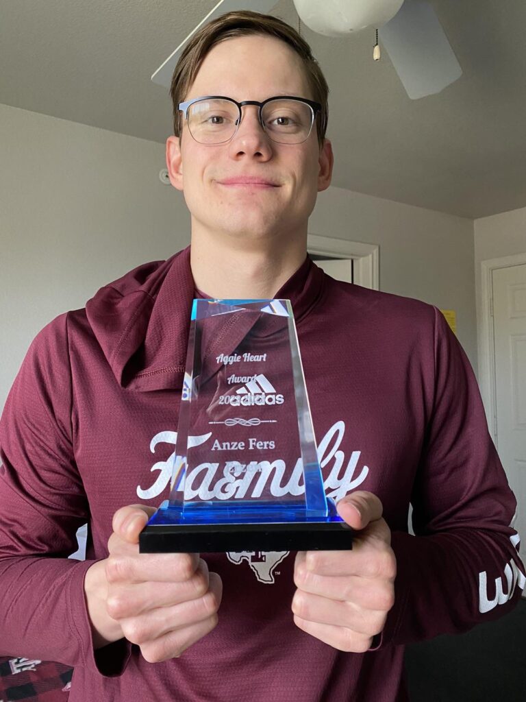 V zadnjih treh sezonah se je uvrstil na prvenstvo NCAA (National Collegiate Athletic Association) in dosegel več rezultatov, ki ga uvrščajo med najboljših 10 v zgodovini A&M univerze, in sicer v disciplinah 100 m hrbtno, 200 m hrbtno, 200 m delfin in 200 m mešano. V sezoni 2022/2023 pa je bil tudi kapetan ekipe Aggies.